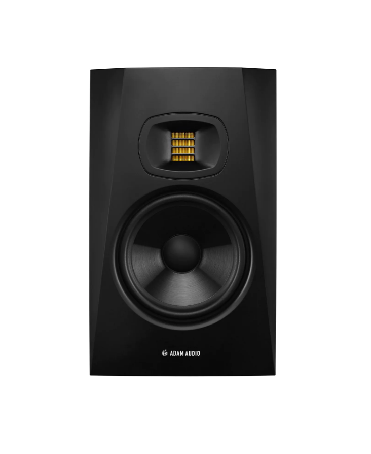 The T7V features a 7” woofer that provides bass extension down to 39 Hz, while the U-ART tweeter’s diaphragm provides pristine and extended high-frequency response up to 25 kHz – virtually unheard of in monitors in this price range. The U-ART tweeter is fitted to a precision waveguide with the same dispersion-control attributes as the High Frequency Propagation (HPS) waveguide used in ADAM Audio’s flagship S Series studio monitors. The waveguide’s highly uniform dispersion of high frequencies provides an incredibly wide sweet spot that frees you from being glued to a rigid mix position while working.