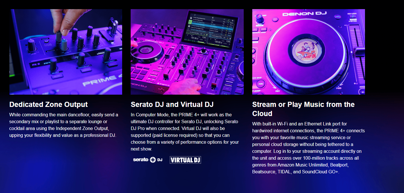 Made by working DJs, for working DJs. The PRIME 4 + combines the powerful creative possibilities of 4 standalone decks with unmatched professional features and rugged build-quality to ensure solid DJ performances night after night and gig after gig.