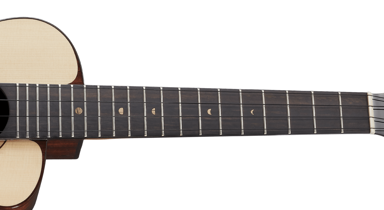 The Moon Spruce Bird Series has a classic-headstock design made with a ebony veneer in mother of pearl logo. The Japanese Gotoh UPT tuners with 1:4 gear ratio for precise tuning.