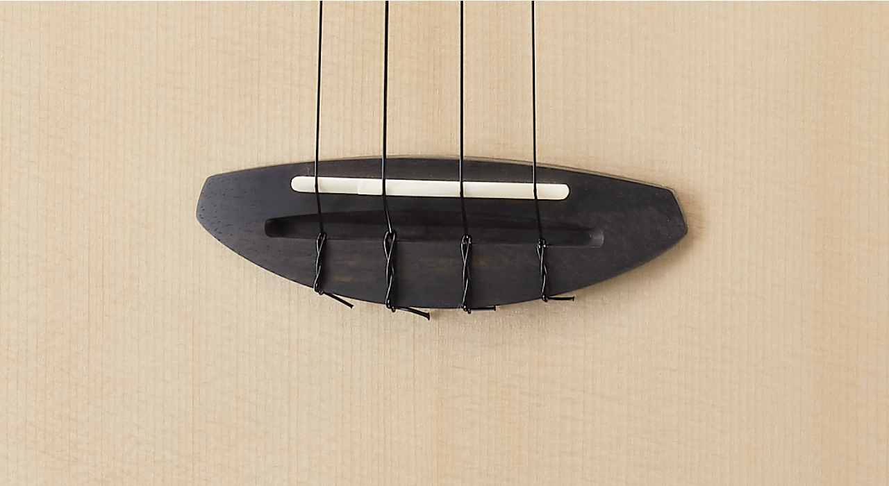 The ebony bridge helps support the string tension. The buffalo bone for the nut which is very hard and articulate. This helps the strings to vibrate and to have a deep resonance. The compensated saddle designed to provide the accurate intonation and produc