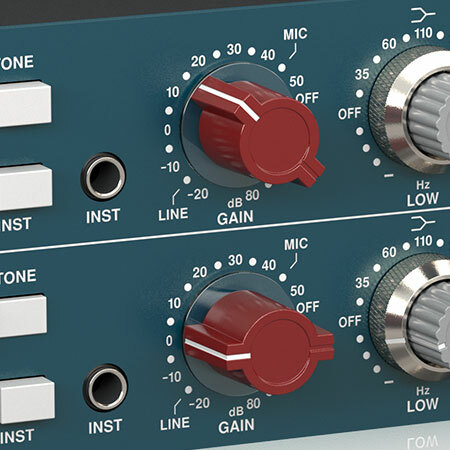 The 1273 includes an electronically controlled, resistor-stepped rotary gain switch that offers up to 80 dB of gain adjustment. This allows you to precisely set optimal input levels with the least amount of noise and is also great for recalling your settings consistently for every mix scenario.
