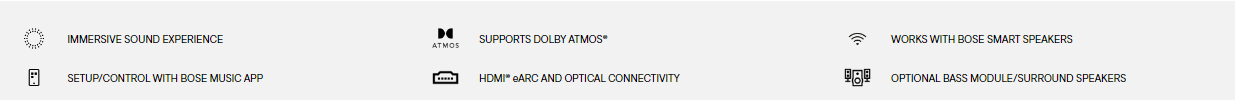 When there’s no Dolby Atmos content, like stereo or 5.1, Bose TrueSpace™ technology takes over for the vertical experience, remixing signals to add “height” without adding a ceiling speaker, creating the same immersive sound experience.