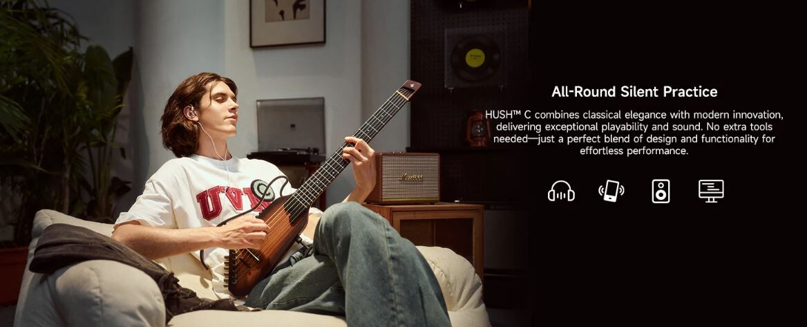 Practice with Headphone,Natural Classic Sound:The HUSH Custom Piezo and HPS-II system deliver natural nylon-string sound with zero feedback. Play silently through headphones or plug in for crystal-clear stage tone—ideal for both quiet practice and live performance.