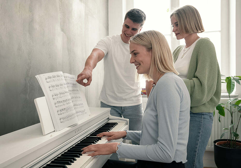 Kawai's latest CN series digital pianos provide a realistic full-sized keyboard, beautiful grand piano sounds, and headphone jacks that allow silent practise at any time of the day. These affordable instruments also offer a variety of inspiring features suitable for everyone in the family, and have attractive cabinet designs that will complement any room. The new CN series from Kawai – experience music, together.