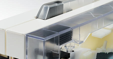 In addition to grade-weighted hammers, the Responsive Hammer III keyboard action also incorporates counterweights embedded within each black and white key. As with an acoustic piano, these additional weights help to balance the touch of the keyboard during pianissimo passages, while providing a feeling of greater substance and solidity when playing with force.