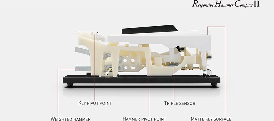 The Responsive Hammer Compact II keyboard action utilises an accurate triple-sensor key detection system for enhanced playing realism.