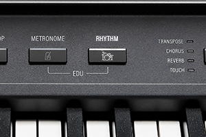 Play along with your choice of pre-programmed backing rhythms from a variety of musical styles.
