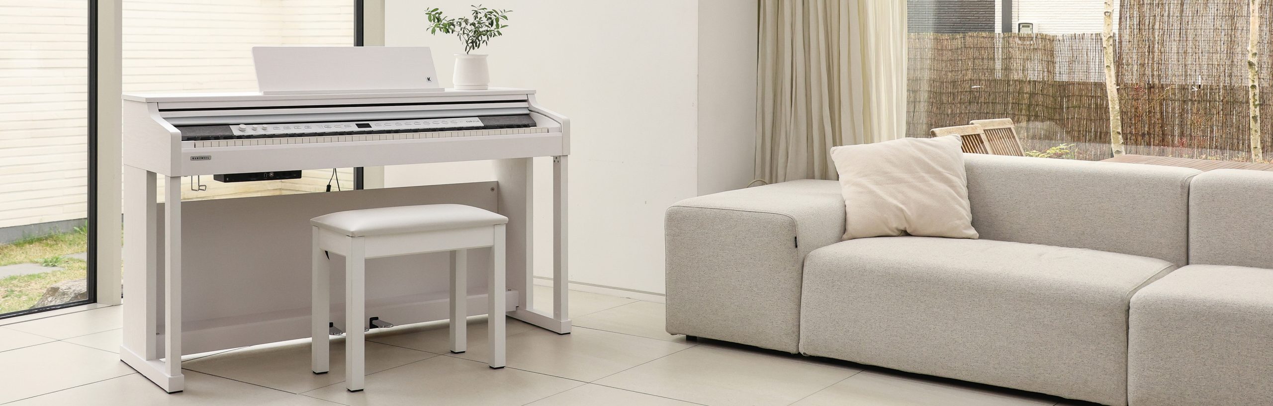 Choose your action. The CUP P1 offers Kurzweil’s H1 Ivory keybed while the CUP P1W elevates your playing experience even further with Kurzweil’s W1 Ivory GT featuring natural wooden keys. Both mechanisms are breakthroughs in natural expression providing 4-zone graded hammer-actions. Crafted with precision, the black keys replicate the textured feel of wood, while the white keys feature ivory-colored key-tops, faithfully recreating the nuanced characteristics and authentic sensation of playing an acoustic piano.