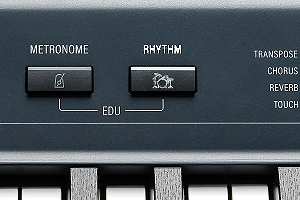 Play along with your choice of pre-programmed backing rhythms from a variety of musical styles.