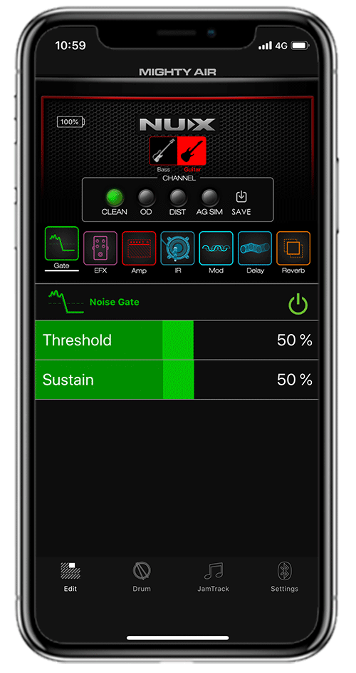 NUX Mighty Air is a wireless stereo modelling guitar / bass amplifier with Bluetooth connectivity and a dedicated app