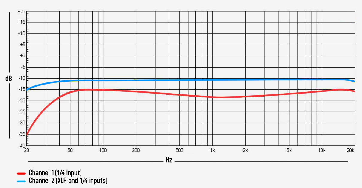 Channel 1 - 1/4 unbalanced input, designed to plug any instrument directly including acoustic guitar, digital piano and keyboard, and electronic drums.