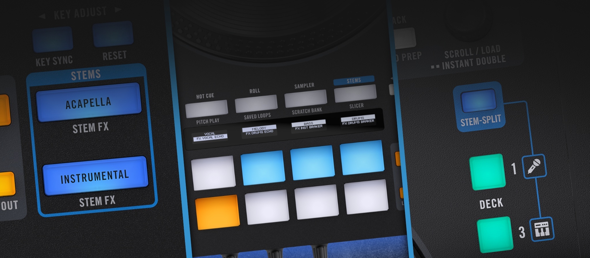 The most advanced Serato Stems DJ controller with dedicated Stems pad mode, independent Acapella/Instrumental buttons, and exclusive STEM-SPLIT feature for the ultimate Stems workflow and experience