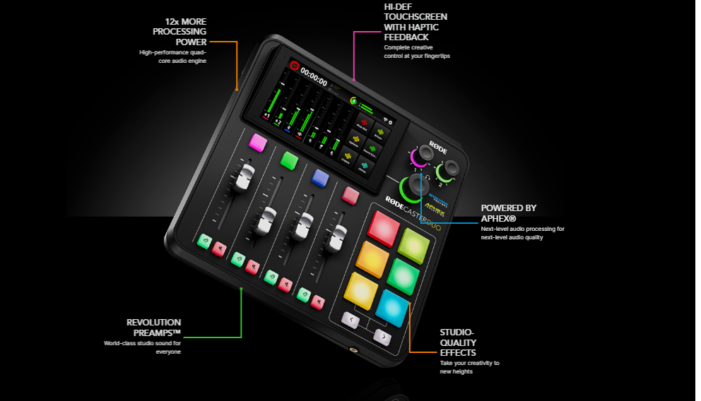 The RØDECaster Duo is incredibly simple to navigate with its large high-definition touchscreen, tactile rotary encoder and broadcast-quality faders giving you hands-on control over every aspect of your sound. Get your project set up in seconds, and with professionally tailored presets and our intuitive VoxLab™ processing editor, you can dial in your perfect sound with the tap of button or twist of a knob. It’s never been easier to create amazing content.