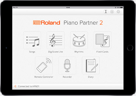 Roland’s free Piano Partner 2 app for iOS and Android mobile devices is the perfect companion for the RP102. Via a wireless Bluetooth connection, it shows digital notation for the piano’s internal songs on your device’s display, and pages even turn automatically as a song plays. You can practice each hand individually by muting the left—or right—hand part, and freely adjust the tempo as needed. The app also provides access to backing rhythms and flash card games that help you build skills with intelligent accompaniment and engaging music exercises.