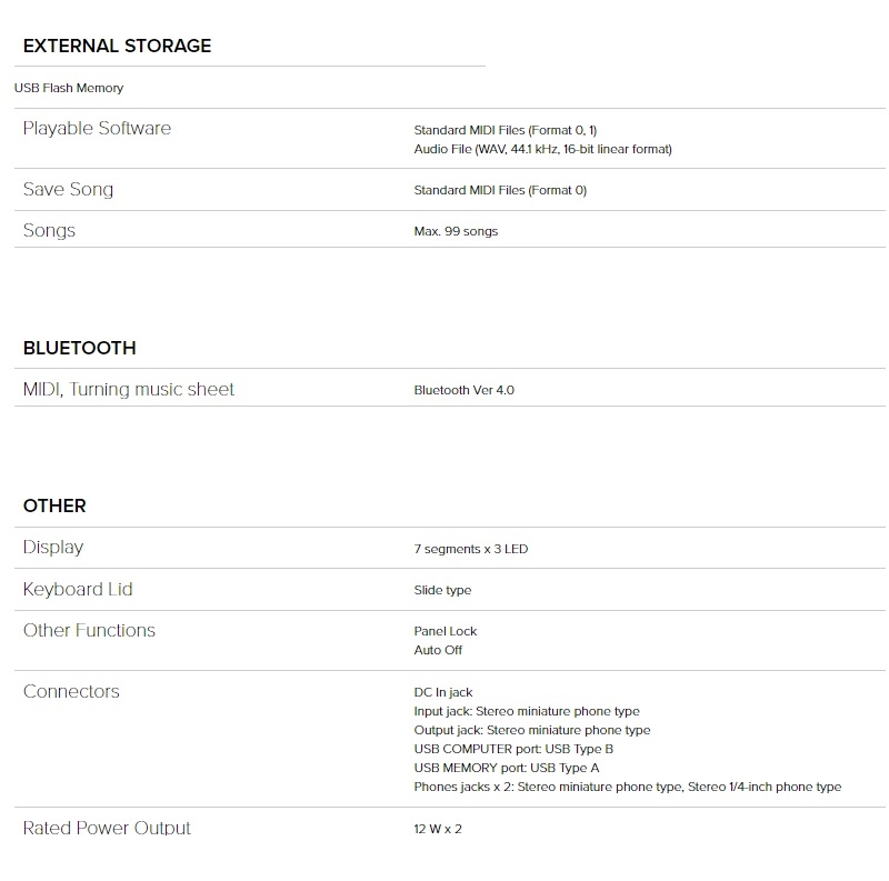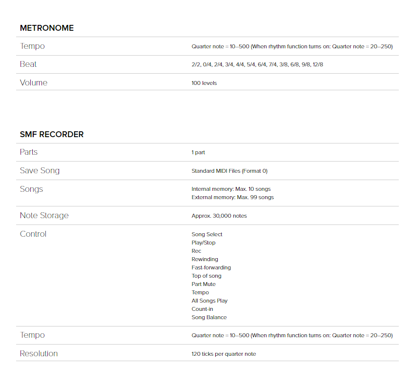 Extensive onboard song library including scale-learning songs, plus metronome and recording functions to boost practice and learning