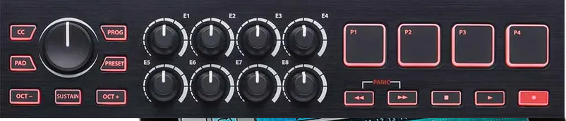 Programmable master encoder, eight MIDI assignable knobs, and transport controls for hands-on control over your DAW and virtual instruments