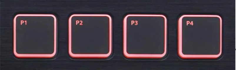 Four velocity-sensitive trigger pads (two banks each) with aftertouch for drum sounds and samples