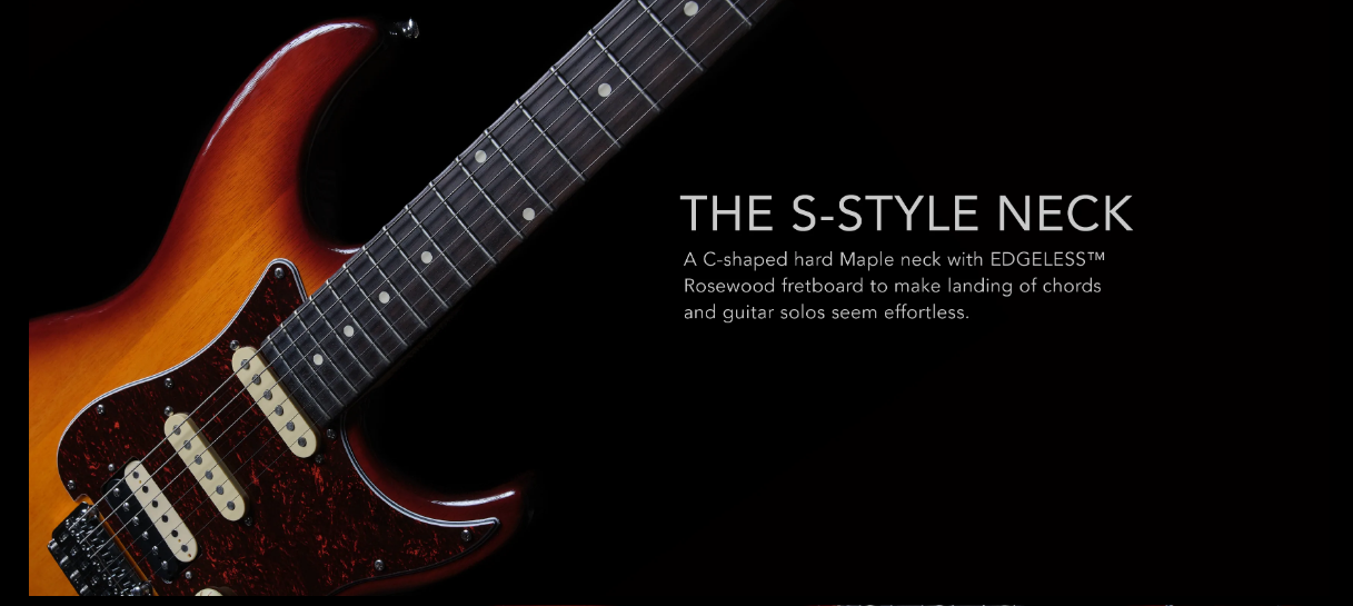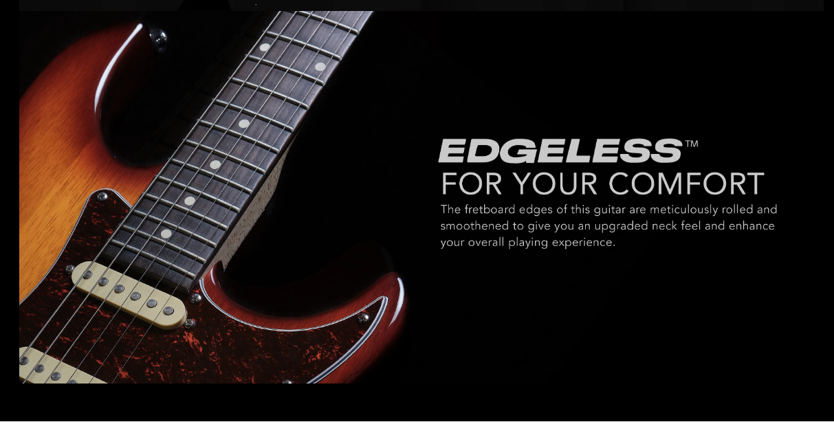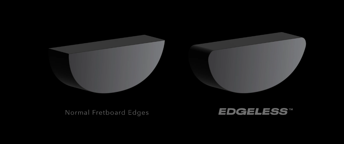 'Edgeless' Rosewood Fingerboard — A silky material with a deliciously-dark grain; enhanced with rolled edges for comfortable, played-in feel. No sharp fret ends here!