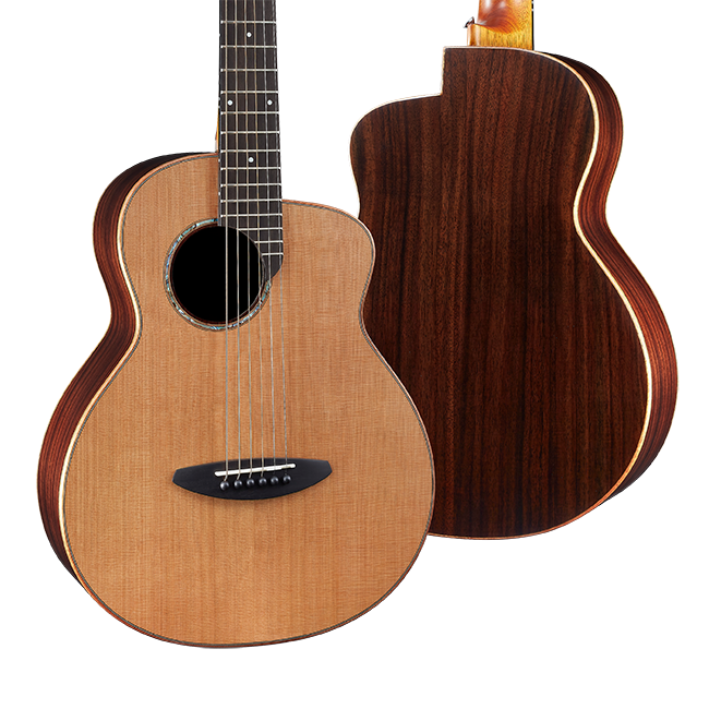 Cedar-In comparison cedar is darker looking and softer than that of spruce, which allows for a softer touch that will produce wonderful harmonic tones and sustained resonance. This tonewood bestows a sweet, warm, and beautiful sound with light touch and makes it ideal for those interested in fingerstyle playing.