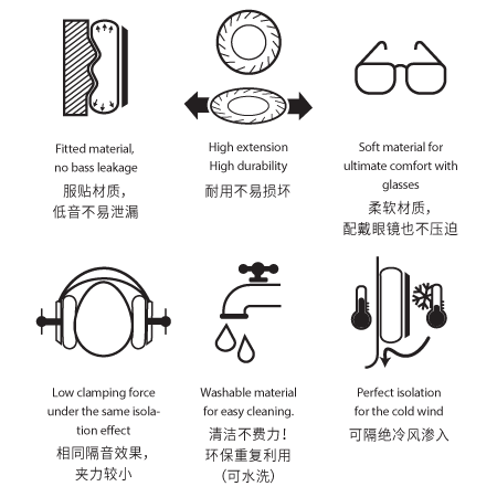 • The high flexibility and softness of the composite material earpads provides best-fit for the ears