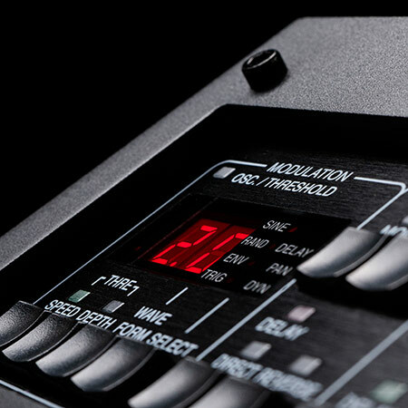 We carefully recreated the original 2290, but we also added modern features, improved bits and pieces and expanded selected effect parameter ranges particularly with the guitar-playing experience in mind. For example, the guitar-friendly Feedback Loop for inserting additional effects to the wet signal and the option to use sub-divisions to control the Modulation block.