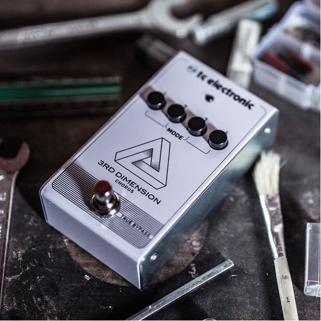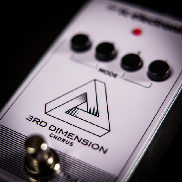 3RD DIMENSION CHORUS is a unique type of “motionless” chorus effect that reproduces that instantly recognizable ‘80s clean tone. It’s full and lush, and expands your tonal range with a 3-dimensional feeling that is at once rich and sweet, as well as shallow and smooth. The pedal has no knobs to fiddle with – just 4 preset buttons ranging from “just a bit” to “quite substantial”. Trust us – you’re gonna love all of them!