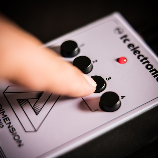 You can save the knob twisting for your other gear; the 3RD DIMENSION CHORUS features 4 tasteful and easy-to-use preset buttons, providing an amazing array of great tones. You can even coax out 16 different presets from the pedal by combining the 4 buttons in different ways (there’s even a hidden preset that’s only active when the buttons are in the up position). A broad palette of tasty chorusing is instantly within your reach – with the 3RD DIMENSION CHORUS pedal!