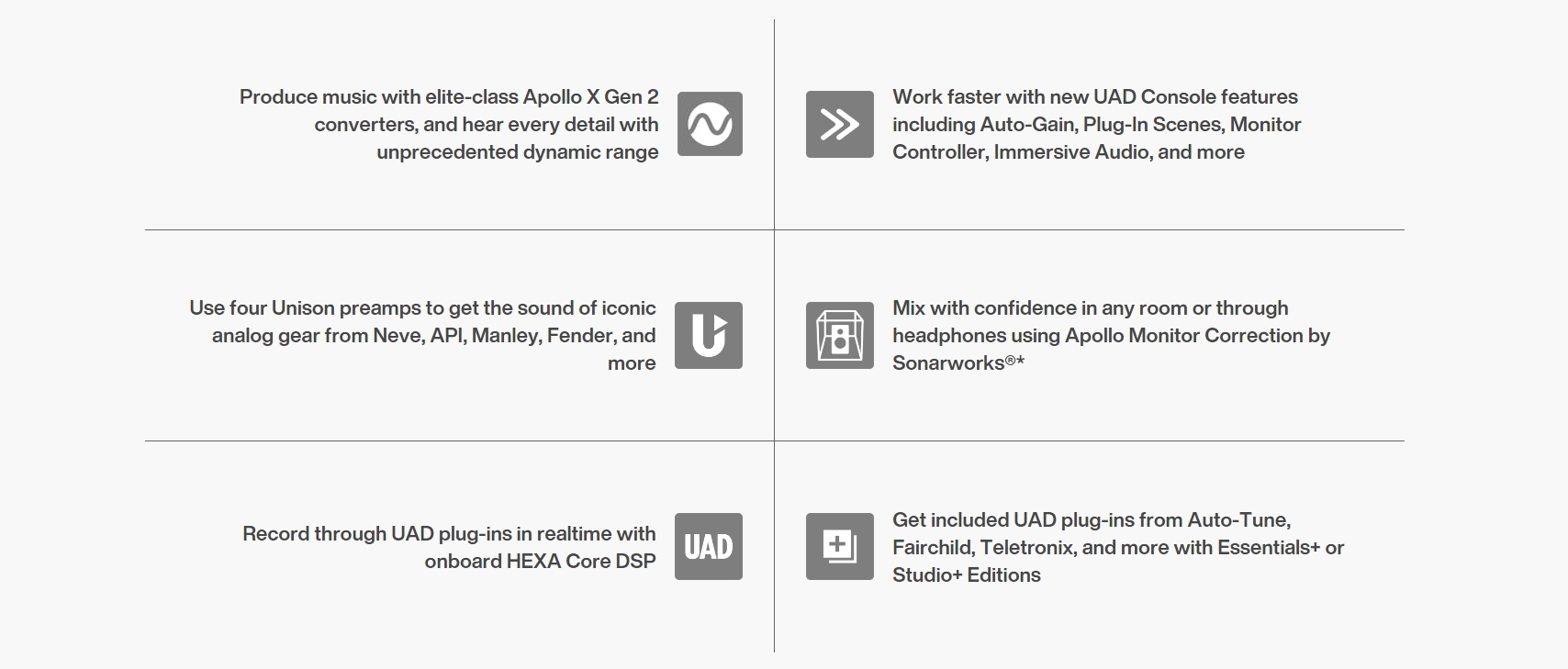 Includes up to 50+ UAD plug-ins with Essentials+ or Studio+ Editions