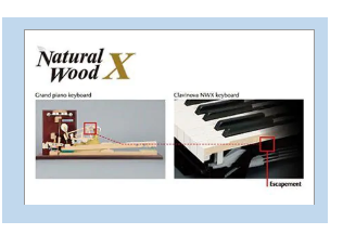 Keyboard Type: NWX (Natural Wood X) keyboard with synthetic ebony and ivory keytops, escapement