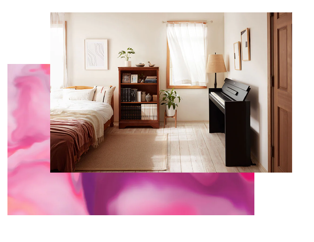 鋼琴造型纖薄,讓您可以放置在任何空間,打造別緻、時尚的室內設計,輕鬆提升您的生活空間風格。此外,闔上琴蓋時樂器外觀平坦,線條乾淨整潔。