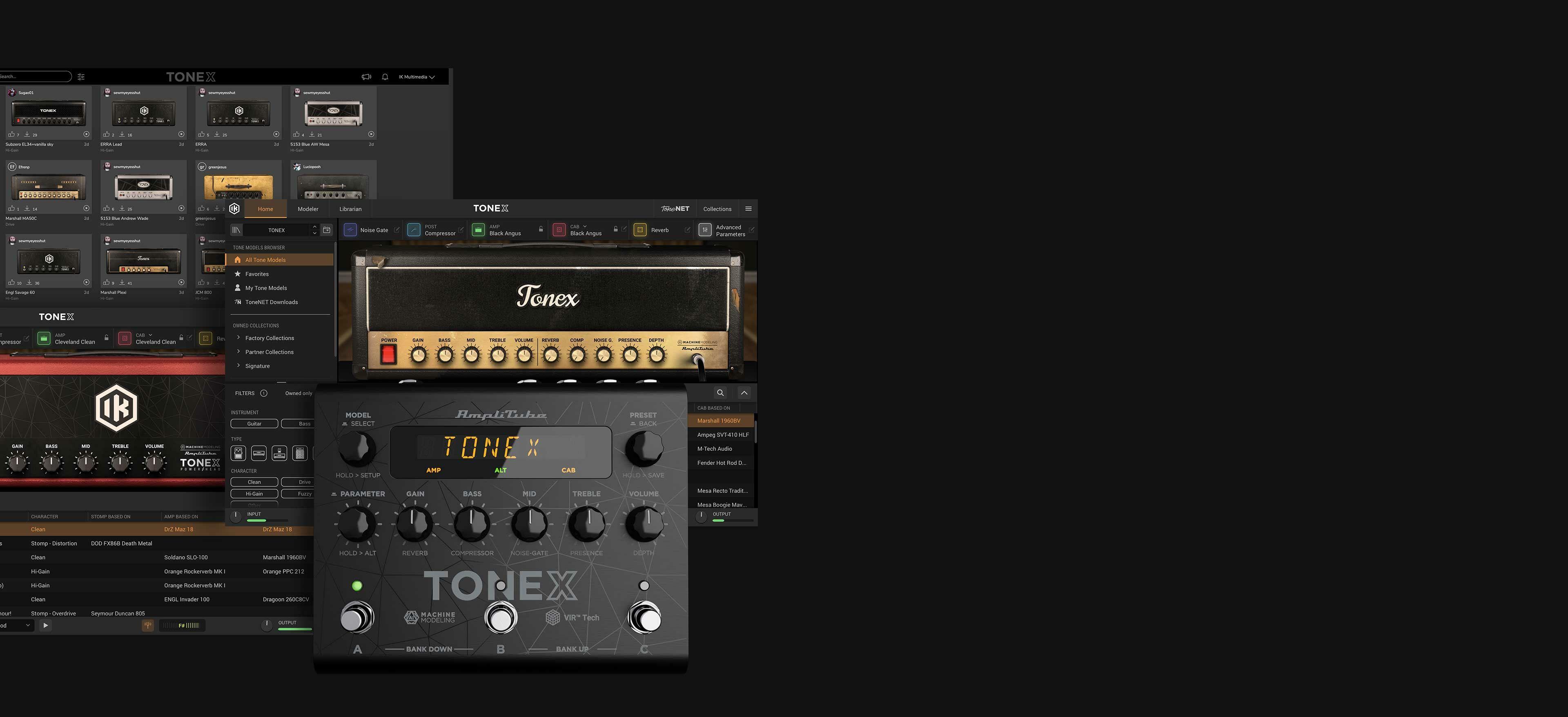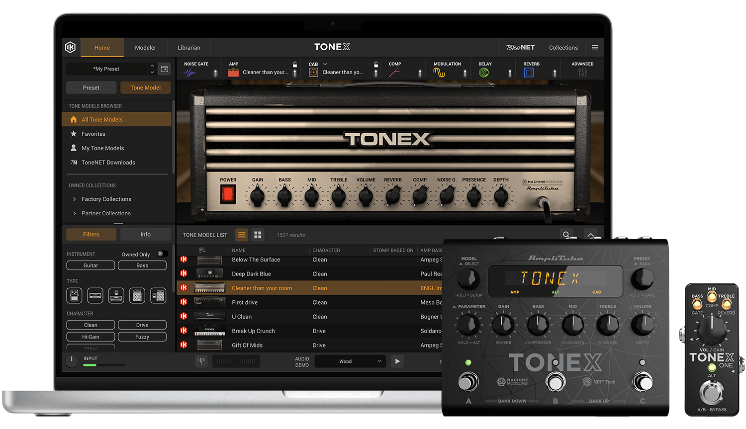 彈奏數百種擴大機、箱體、踏板和完整裝置,包括 1100 種可下載的高級音色模型和無限的用戶創建音色模型下載