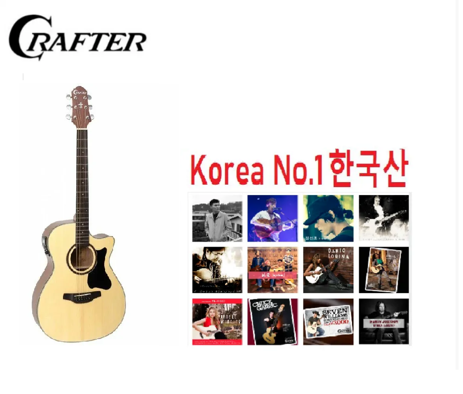 韓國國民品牌結他,這把HG-100CE ELECTRIC ACOUSTIC GUITAR 是電木結他,可連音箱彈奏, 而且琴頸很適合亞洲人彈奏使用,使用了桃花芯琴頸,手感一流.其雲杉木面板是音色通透明亮,CRAFTER 結他是不少韓國歌手,樂手喜愛使用的品牌