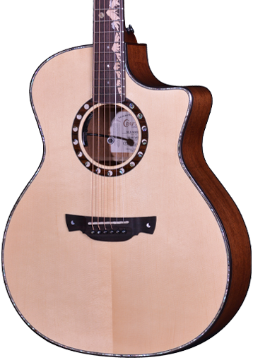 Crafter 投入了50多年的木結他工匠的專業知識,精心挑選的材料,採用產自阿爾卑斯山的實心高山雲杉面,這次使用了很多人喜歡的開放式啞面質感,經過crafter精心設計製作,用家可感受到順滑木材的手感。