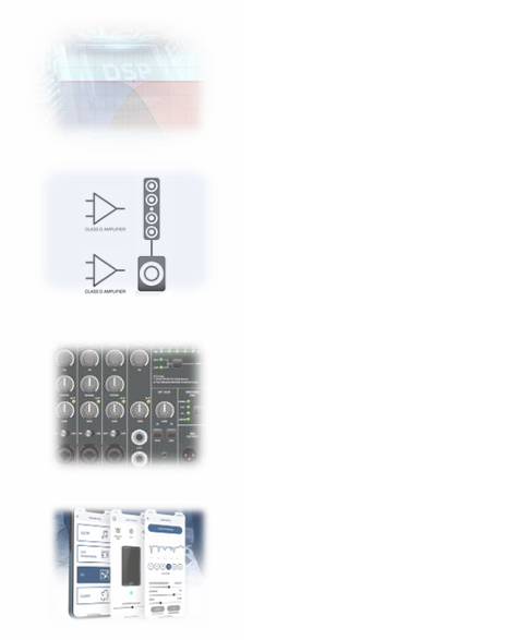 3 and 4 channel mixer provide microphone, line, and instrument input flexibility plus DSP-based channel