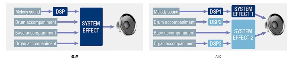 高速電子訊號處理器亦應用至每種音效類型,例如主音、基調鼓聲與低音樂部,或是管風琴。即使是基本的鍵盤配置,亦能為每種樂器帶來分明的聲音,炮製表現力豐富的演出。