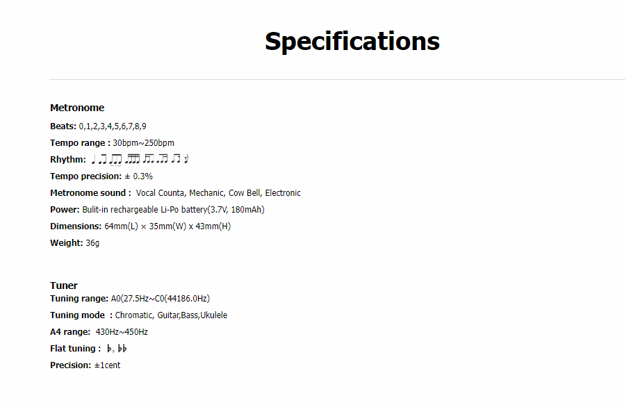 As a well-experienced team who have dug in this field for over 20 years, Cherub knows what is important for a metronome. You can set the tempo with simple taps from 30 bpm up to 250 bpm, which offers you the opportunity to catch your inspiration in a flash and goes with it.