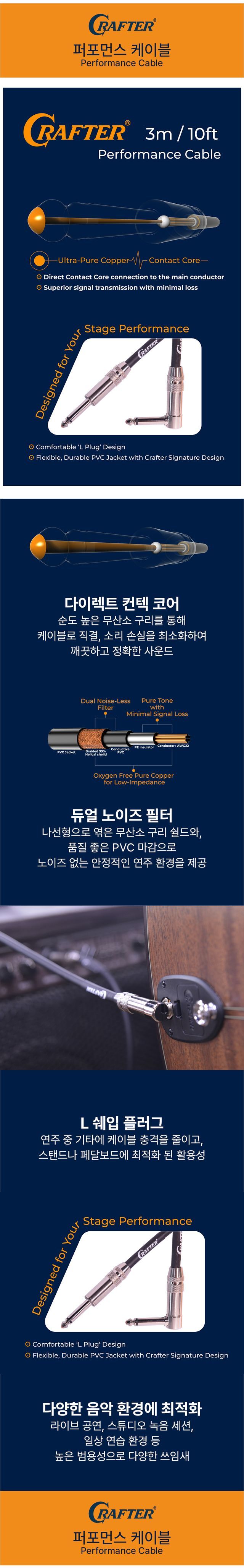Crafter performance audio cable ofc guitar jack 6.5mm 結他線