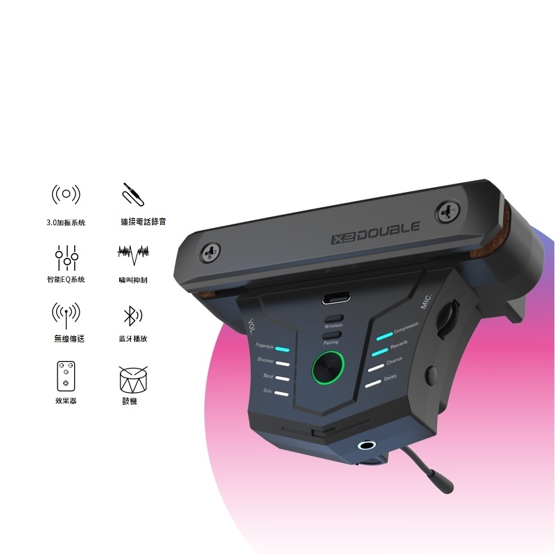 一個PICK UP多過用法,不單有DOUBL拿手的共振效果功能,而且有最新改良3.0 XR 線圈,還原能力加強, 48K及32BIT高清處理, 聲音更富豐 , 新增智能APPS控製, EQ , 效果,LOOP , 拍子,等等, 最後還新增了無線傳輸,讓你無論練習,演出都更輕鬆自在.