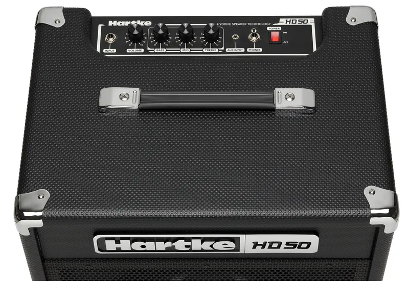 The HD50 (50 watt, 10" driver) features Hartke's patented HyDrive speaker technology, which offers a carefully crafted hybrid (half paper, half aluminum) cone bass speaker. Combining the warmth and roundness of paper with the punch and attack of aluminum, the HyDrive design produces a serious tone ideal for bassists of all genres and styles.