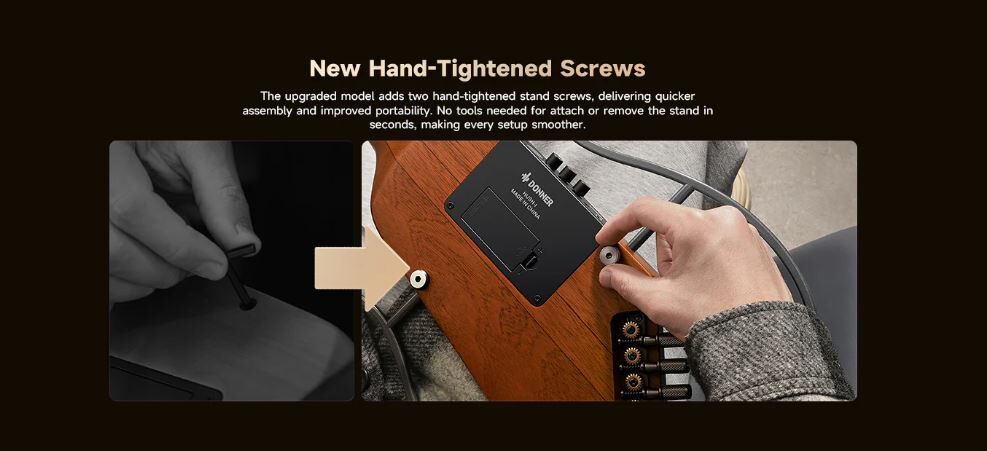Designed for life on the move. New hand-tightened thumb screws allow you to attach or remove the ergonomic frames in seconds—no tools or screwdrivers required.