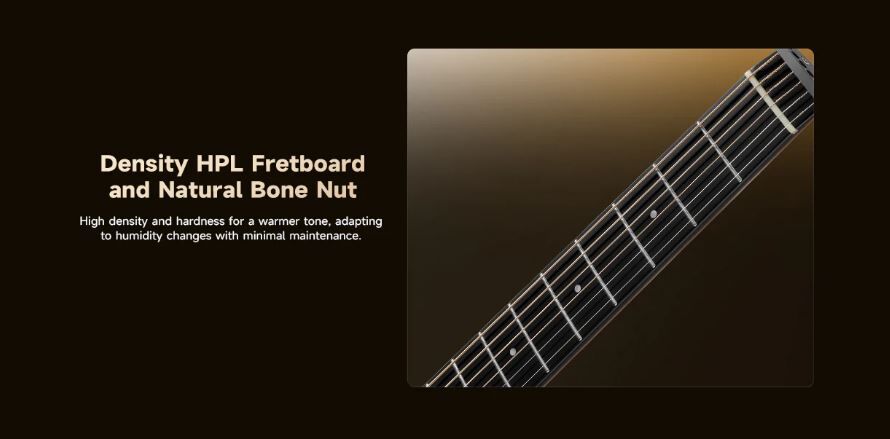 Featuring a new 5-piece Maple/Mahogany construction with an HPL fretboard. Engineered to resist warping and stay in tune across all climates and humidity levels.