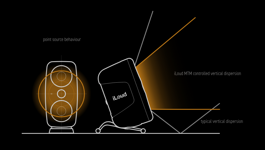 In addition to improved speaker drivers, iLoud MTM MKII maintains tight vertical dispersion, minimizing the acoustic impact of desktop placement and ceiling and floor reflections to ensure the most accurate possible sound. MTM MKII offers a wider horizontal dispersion, creating a broader sweet spot for easier mixing than other MTM designs while maintaining the smoothest in-room response. Better power efficiency and extended max SPL mean iLoud MTM MKII also offers superior performance as an FOH mixing monitor, immersive speaker or other volume-dependent tasks.