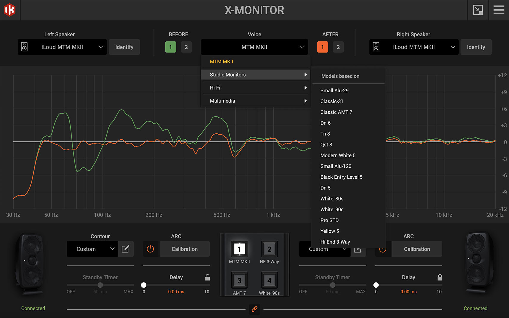 With advanced ARC auto-calibration, MTM MKII guarantees improved acoustic performance in any space in seconds. Connected to a computer, award-winning X-MONITOR software adds deep customization and breathtaking emulations of 20+ top studio monitors and other playback systems to A/B your mixes instantly for the perfect translation.