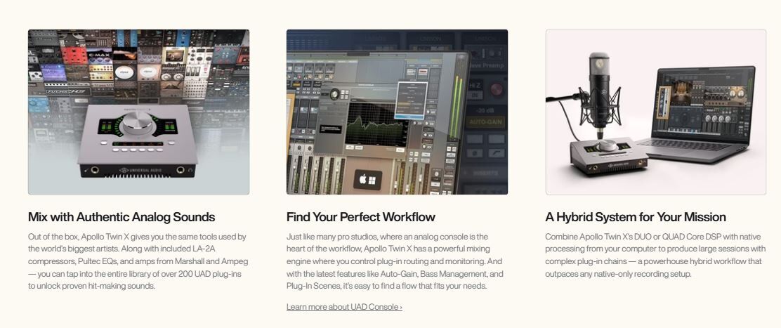 Onboard DSP supports over 200 UAD plug-ins via VST, AU, and AAX 64 formats in all major DAWs