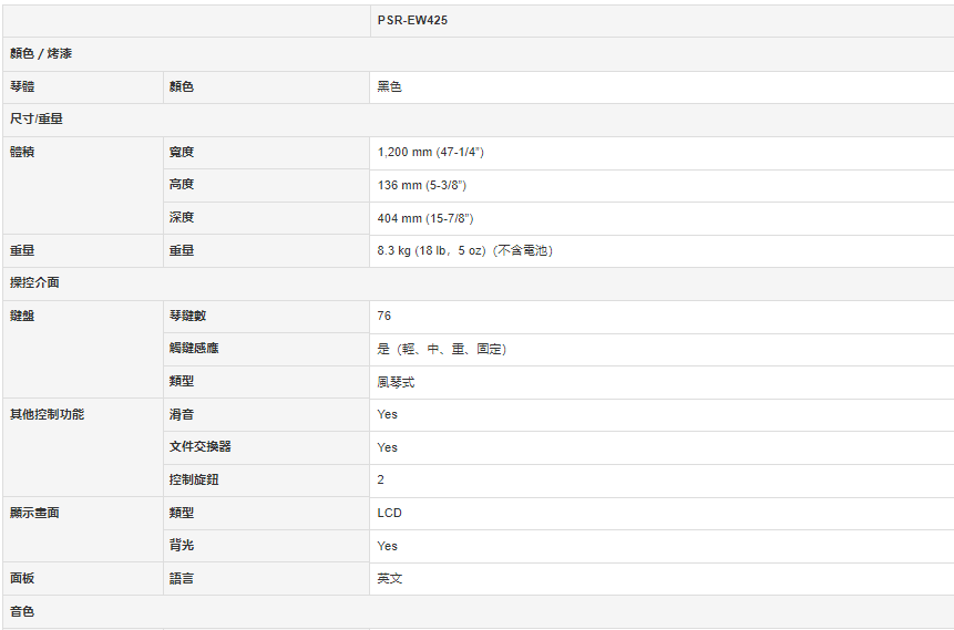 PSR-EW425 具有 76 鍵觸鍵感應鍵盤和功能,這些功能是以著名的 PSR 系列可攜式鍵盤為基礎並進行改進,PSR-EW425 提供強大的功能和效能,讓您的音樂表現更上一層樓。