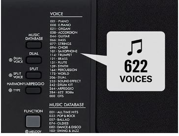 PSR-E373 有著 Yamaha 新開發的音調產生器 LSI,可帶來聲音品質以及高品質音效的驚人改善的。得益於這一新款LSI,您可盡享有著622 種樂器聲音且內容全面的音樂庫,以完美適用於您選擇的任何類型演奏,以及再現獨一無二的超清晰Lite 音色,以再現諸如大提琴與曼陀鈴等弦樂器的顫音及振動音——之前是難以模仿——​​有著驚人的真實感,帶來一流的真實演出。