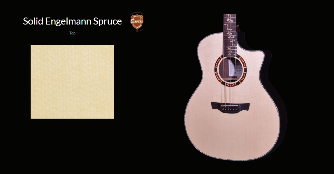 實木的面板,能比夾木的有更良心的傳遞聲音能力,(Solid Engelmann Spruce) 英格曼雲杉面板,它有雪白潔淨的色系,擁有快速而擴闊反應,且音色較西卡雲杉圓潤。