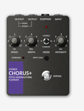 ST.CH(Stereo Chorus)基於MXR® Stereo Chorus,我們取消了原型機上的BASS和TREBLE旋鈕來整合控制,預設將這兩個參數置中。另外,我們也徹底擺脫了原型機對低頻濾波器的依賴,因為我們引以為傲的「Core-mage」建模技術可以進行自動修正。