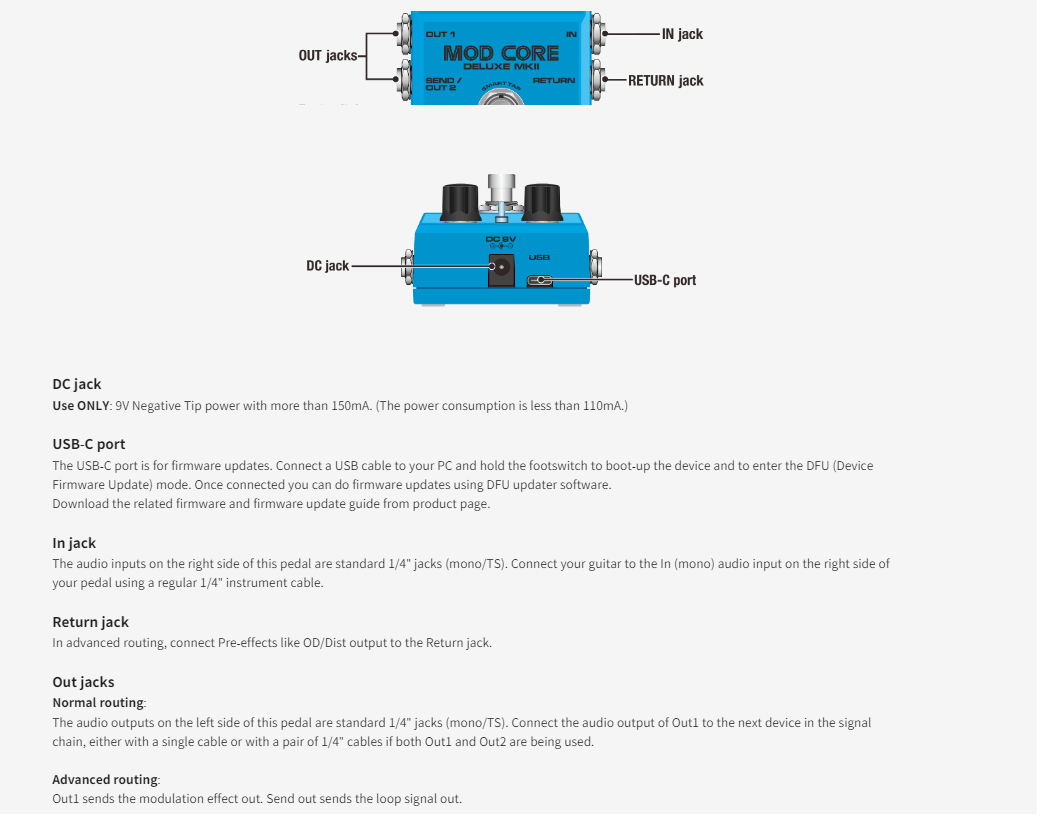 MOD CORE DELUXE MKIl是一款調變效果單塊效果器。它搭載了8款不同的調變效果,包括ST.CH(Stereo Chorus)、CE-1、SCF CHO、SCF FLG、SCFP.M.、U-VIBE CHO、U-VIBE VIBI以及PH-100。您可以轉動TYPE旋鈕來切換所需調變效果。