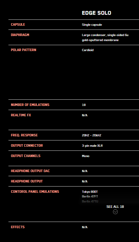 The Edge Solo is a versatile and easy to use condenser microphone that brings our unwavering commitment to high-resolution sound to your home studio and builds upon it with the tone-shaping abilities of 18 recording legends. The unique balance of heritage and technical innovation embodies the essence of the Edge Solo, making it the premier choice for your vocals and acoustic instruments.